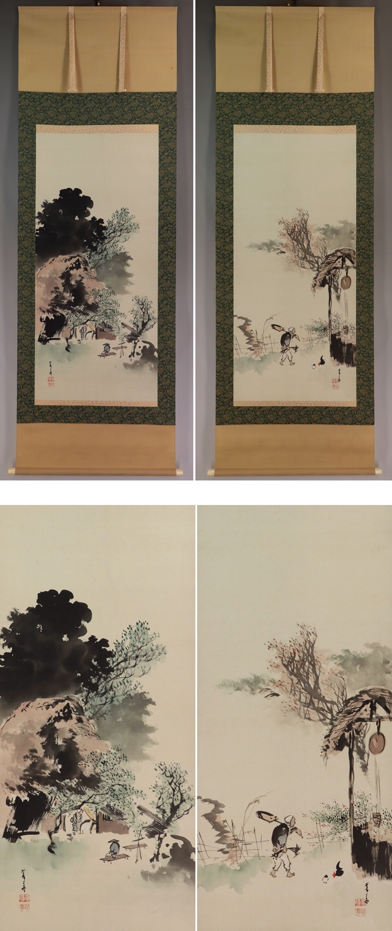 | №2110082 名品【真作】橋本菱華【双幅・春秋山水】◆絹本◆合箱◆掛軸 | |