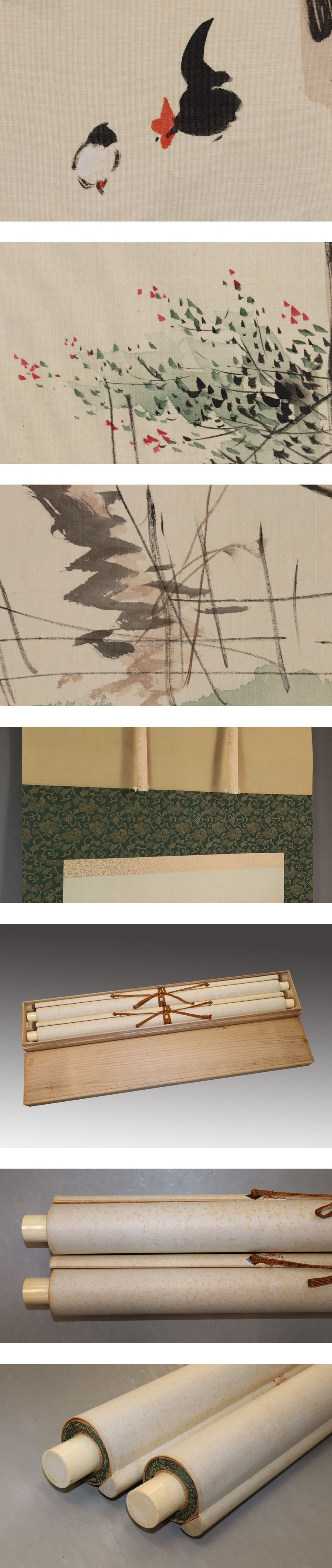 橋本菱華 はしもと-りょうか(生没不明) 明治時代に活躍した日本画家。本名は橋本真之助。 本紙は、染みがあります。 表装は、染み、汚れ、軽い皺があります。 【サイズ】 作品 横約50.5cm×縦約110cm 表装 横約65cm×縦約191cm |