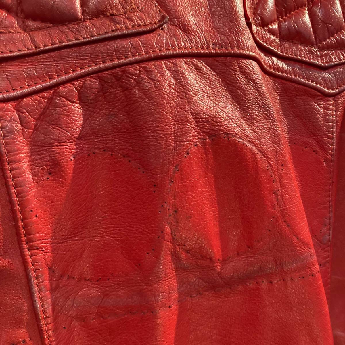 イギリスの名門TTleathersのライダースジャケットです。クールな赤色です。