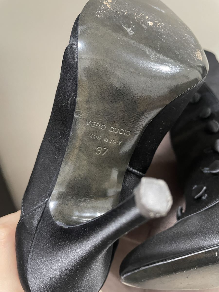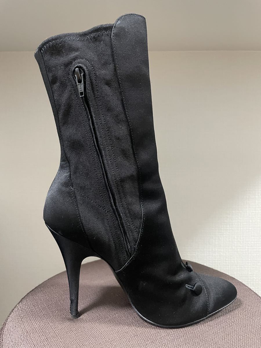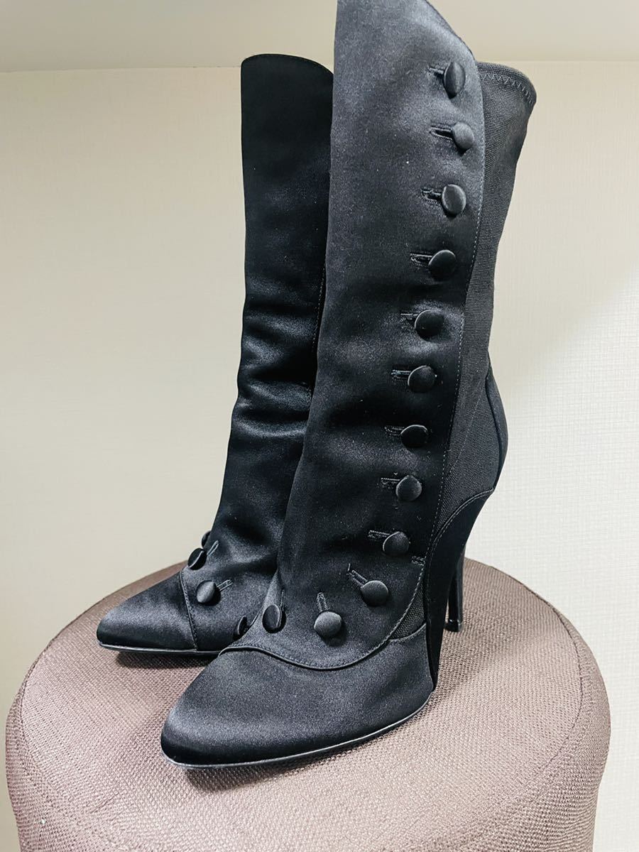 ブラックサテンブーツ 37