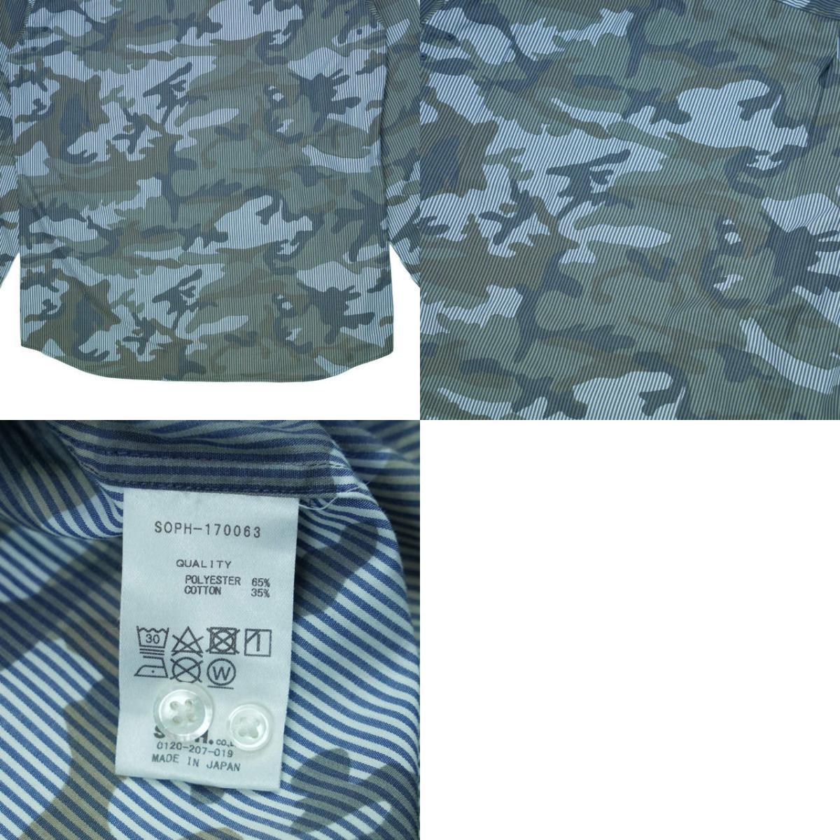 SOPHNET. ソフネット 17SS CAMOUFLAGE OVER PRINT L/S B.D SHIRT カモフラージュオーバープリントBDシャツ SOPH-170063 M NAVY g4256