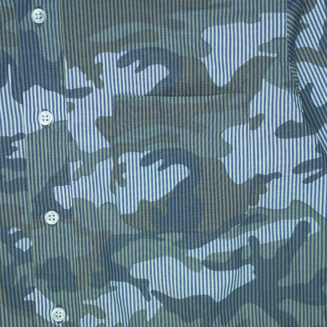 ストライプ柄の上にカモフラージュ柄をオーバープリントしたSOPHNET.の代名詞的な一枚。