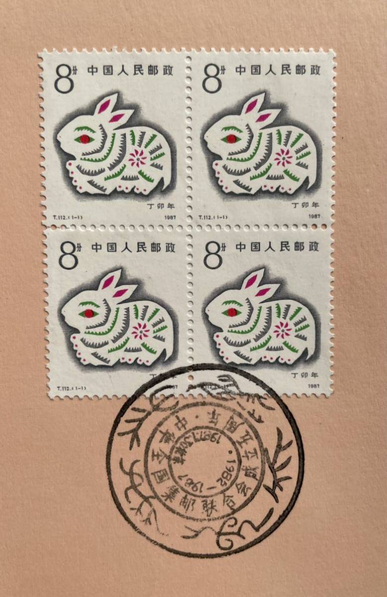 ◆中国切手◆1987年年賀切手 ウサギ 4枚記念