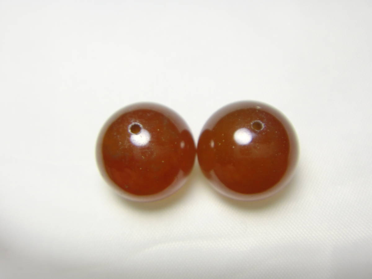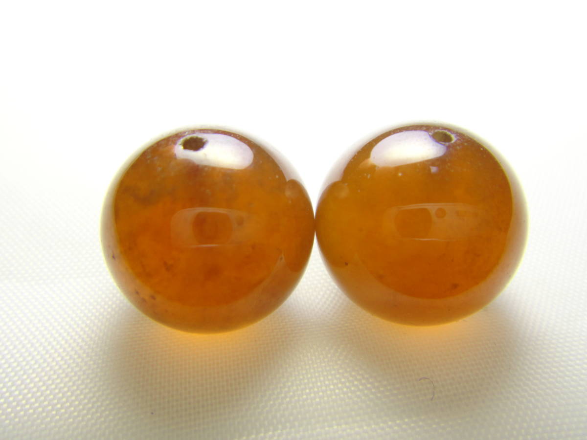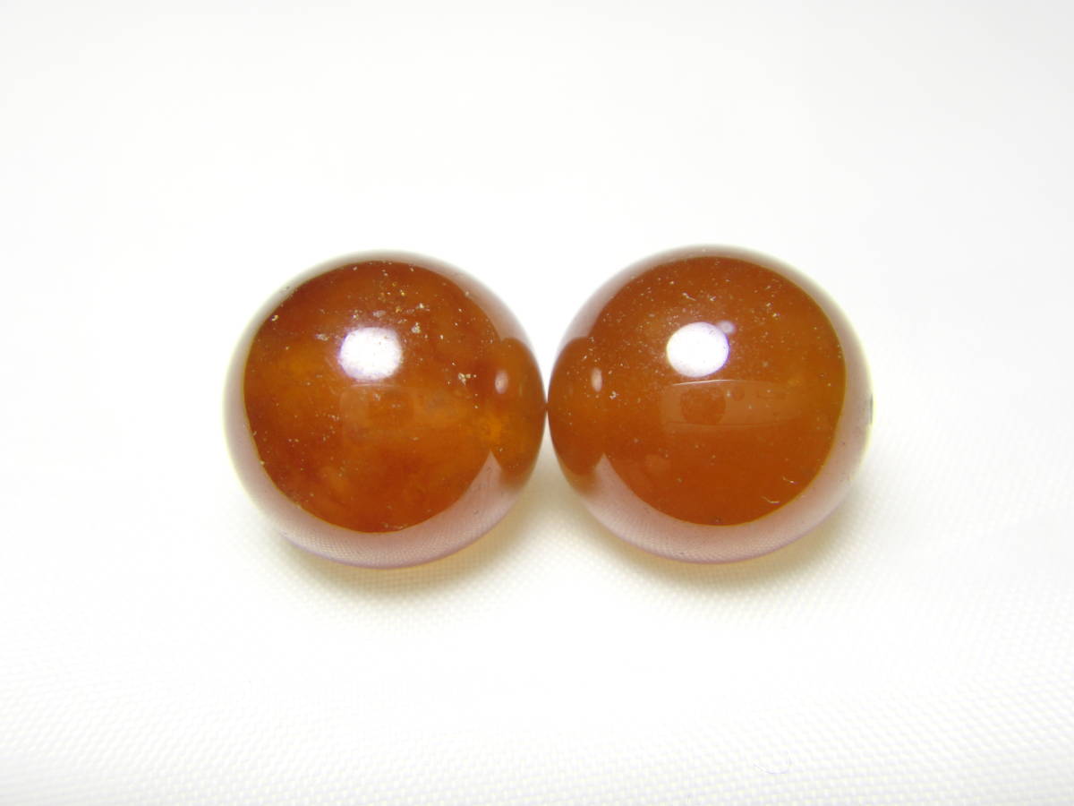 天然石 オレンジガーネット ヘソナイト 約12.8㎜玉 2個セット A888
