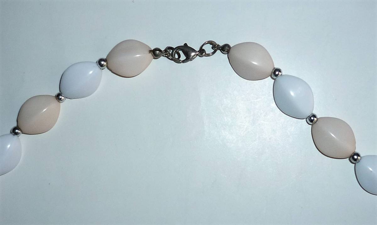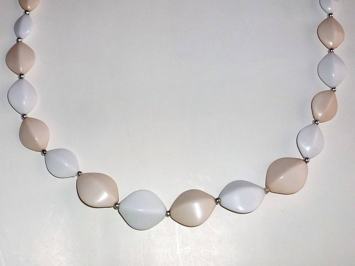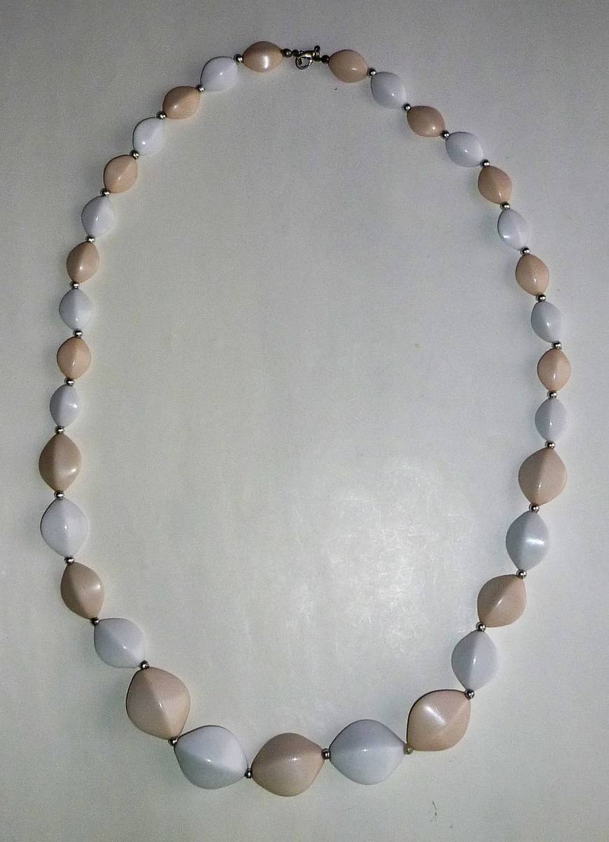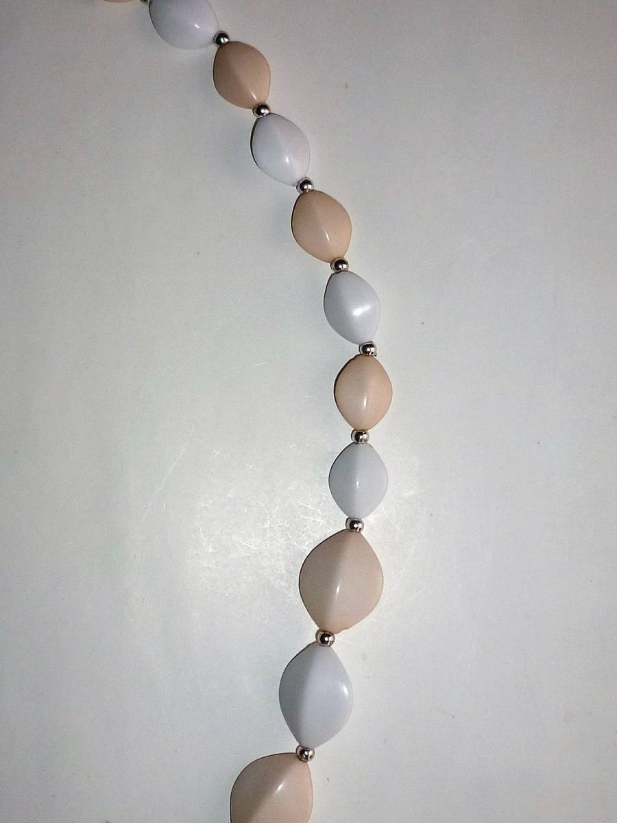 ホワイト/ベージュカラーストーンネックレス 全長約76cm 重量約48g