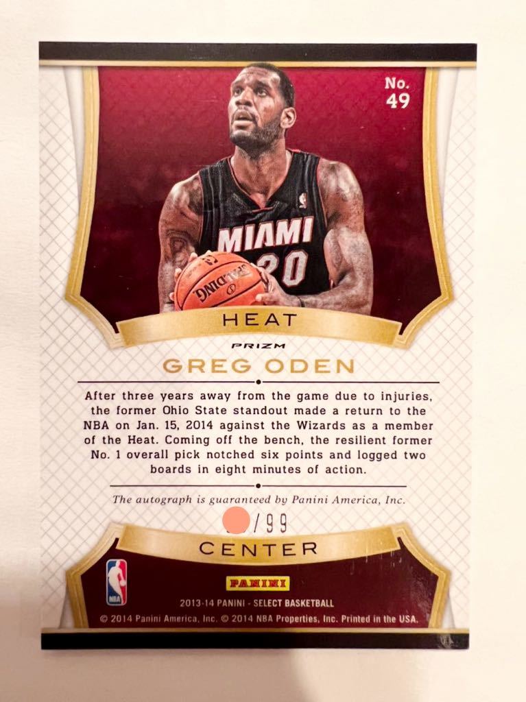 激レア選手/99 直書Pink Prizm Auto 13 Panini Greg Ogden グレッグ・オデン NBA 直筆 サイン Heat ヒート ユニフォーム CBA バスケ