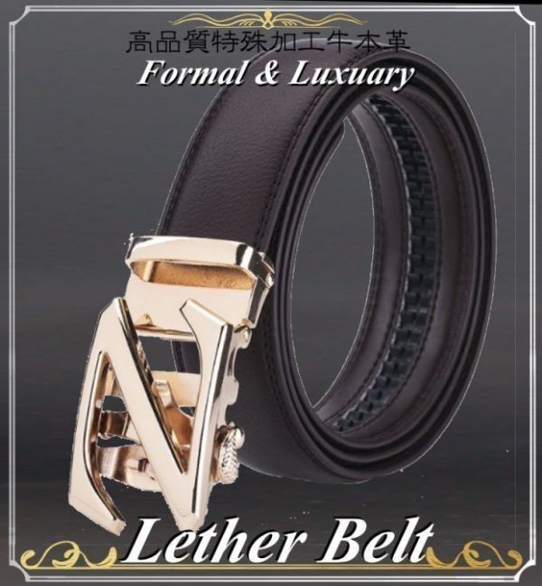 ベルト 【茶】【金Z】 ダーク 穴なし 無段階調整ベルト ゴルフベルト 人気 オートロック メンズ 革 ジーンズ ビジネス カジュアル