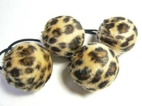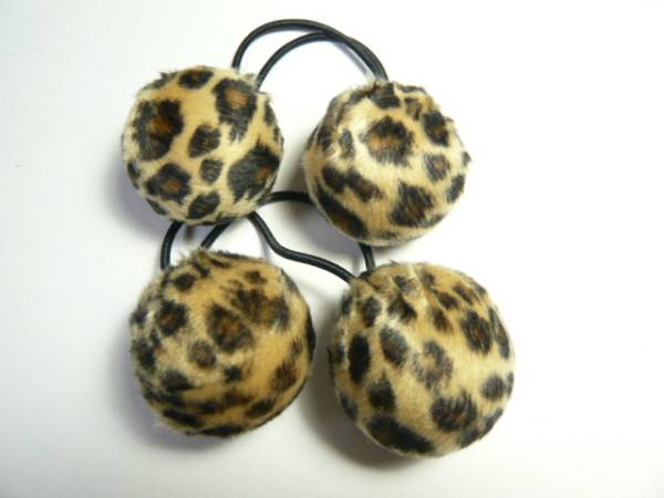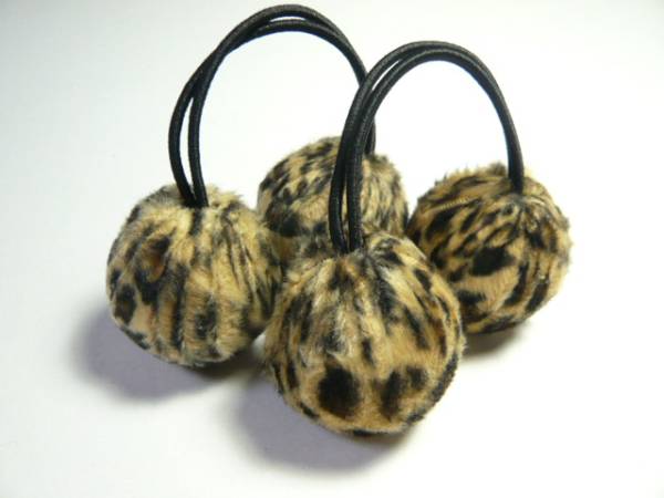 | 今年、大流行のヒョウ柄のファーのボンボンのヘアゴムを2個セットにしました。 | ||