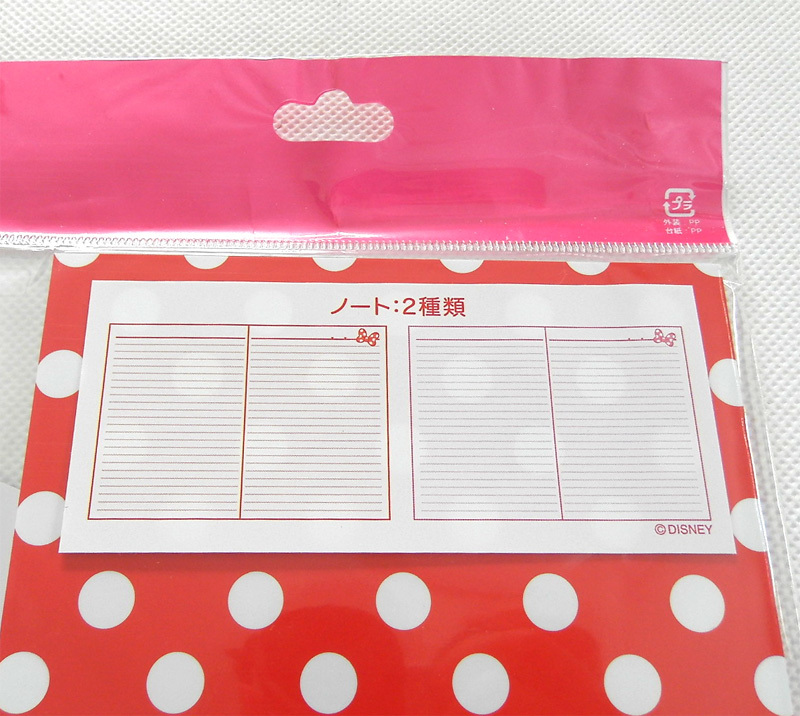 中の絵柄は罫線と、右上にミニーのリボンの絵柄になっているようです。
