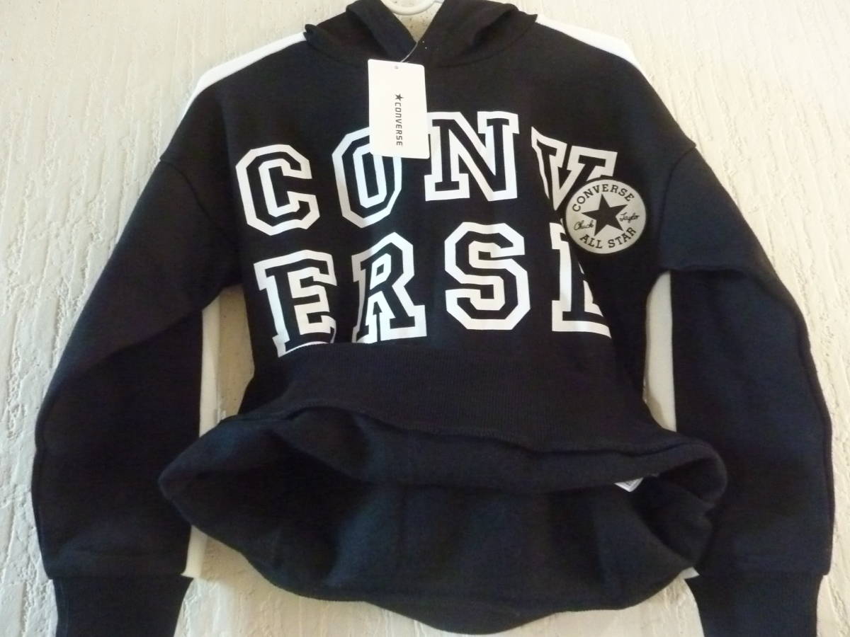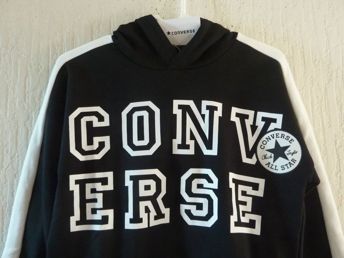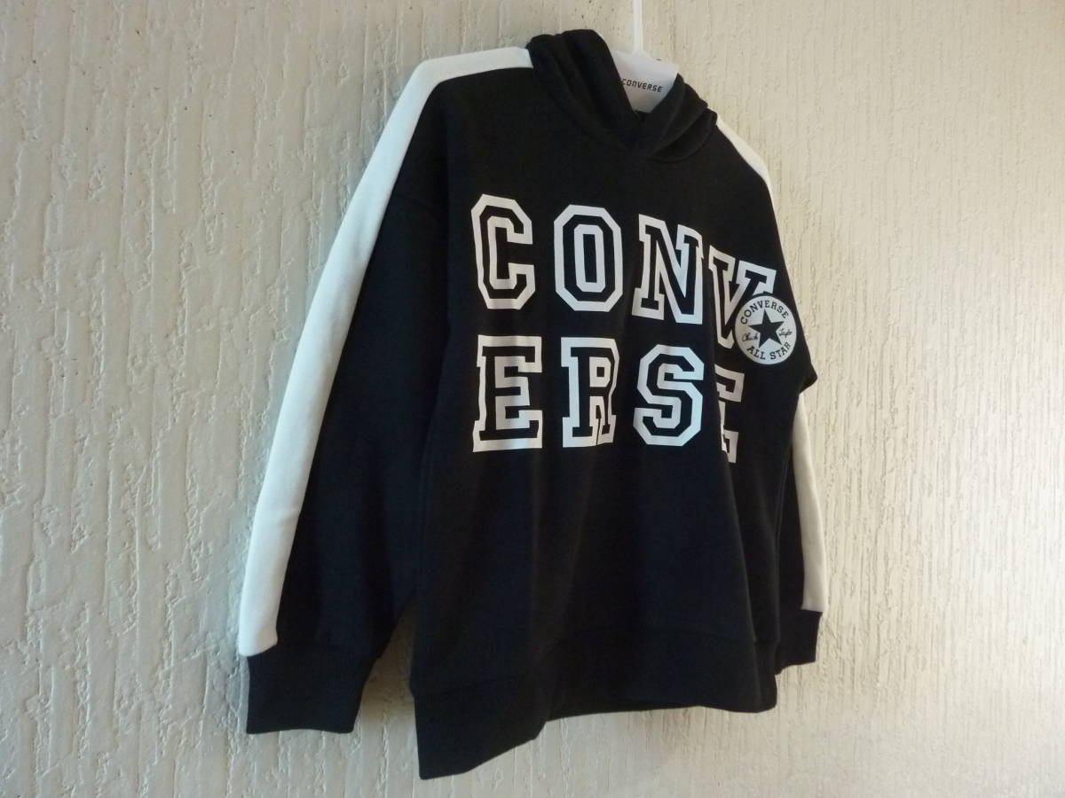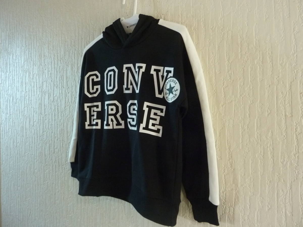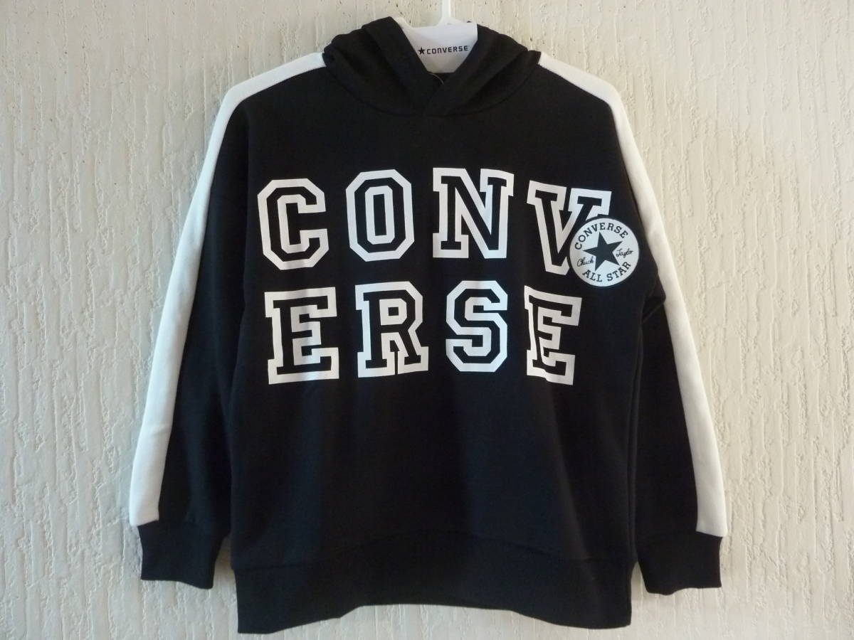★CONVERSE☆コンバース キッズパーカー【お洒落ホワイトライン入】☆ロゴ ワッペン付き★キッズサイズ140★ブラック★新品未使用タグ付★