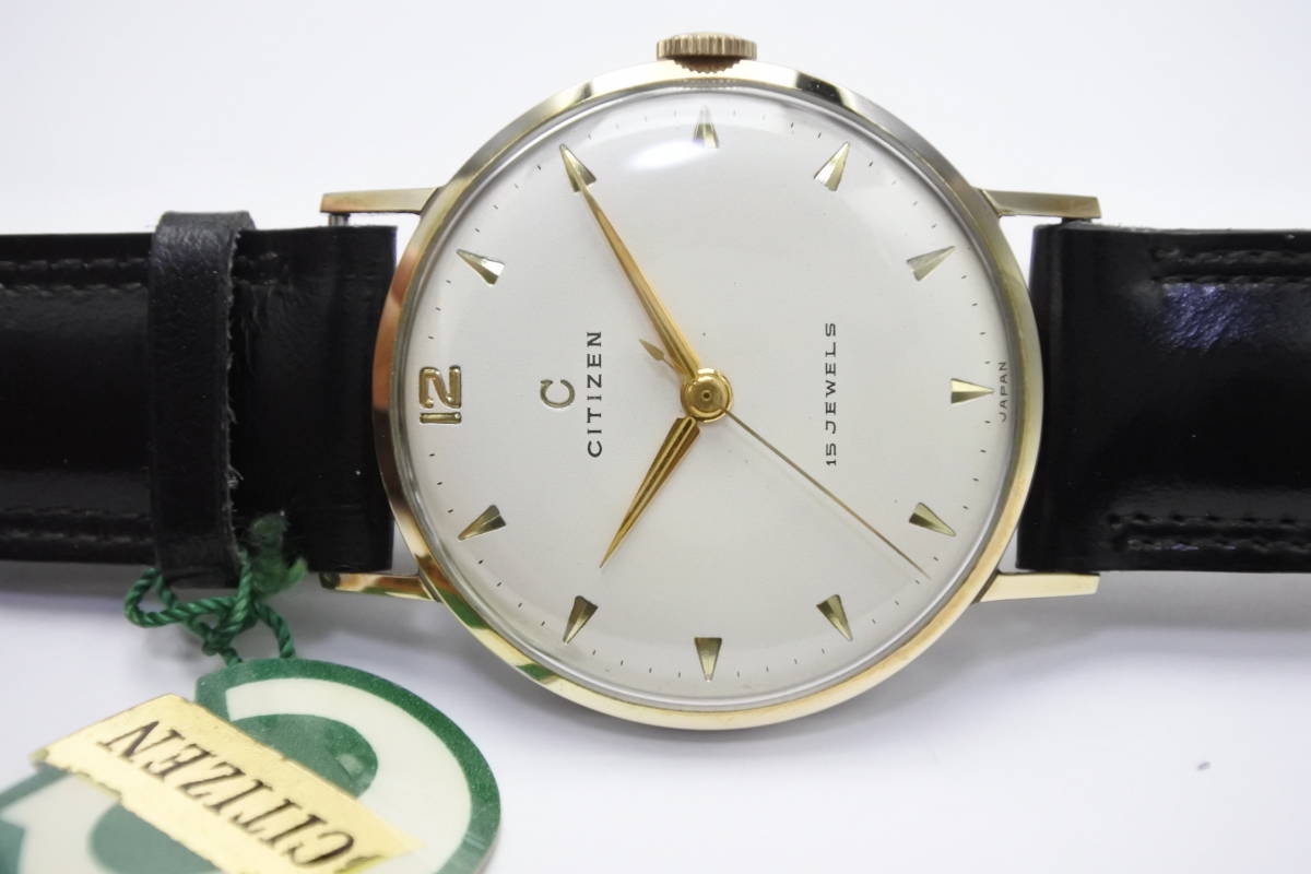 最近少なく貴重機種*1961年製 CITIZEN  Cマーク TOP 14K金張 15石 手巻き紳士腕時計 デッドストック品