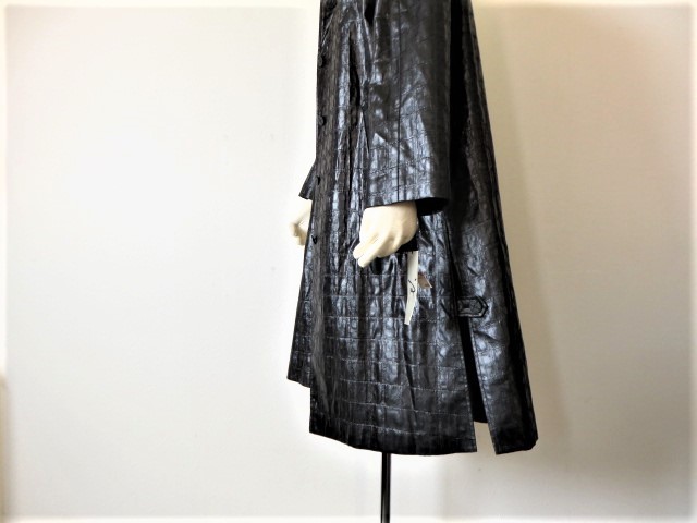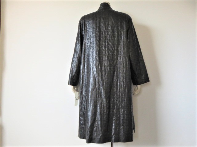 ■新品 43,780円 上質美品 日本製 ロングコート 11号 L ブラック レザー風型押し 百貨店購入 黒 コート 大きなサイズ11号 13号 15号 c694