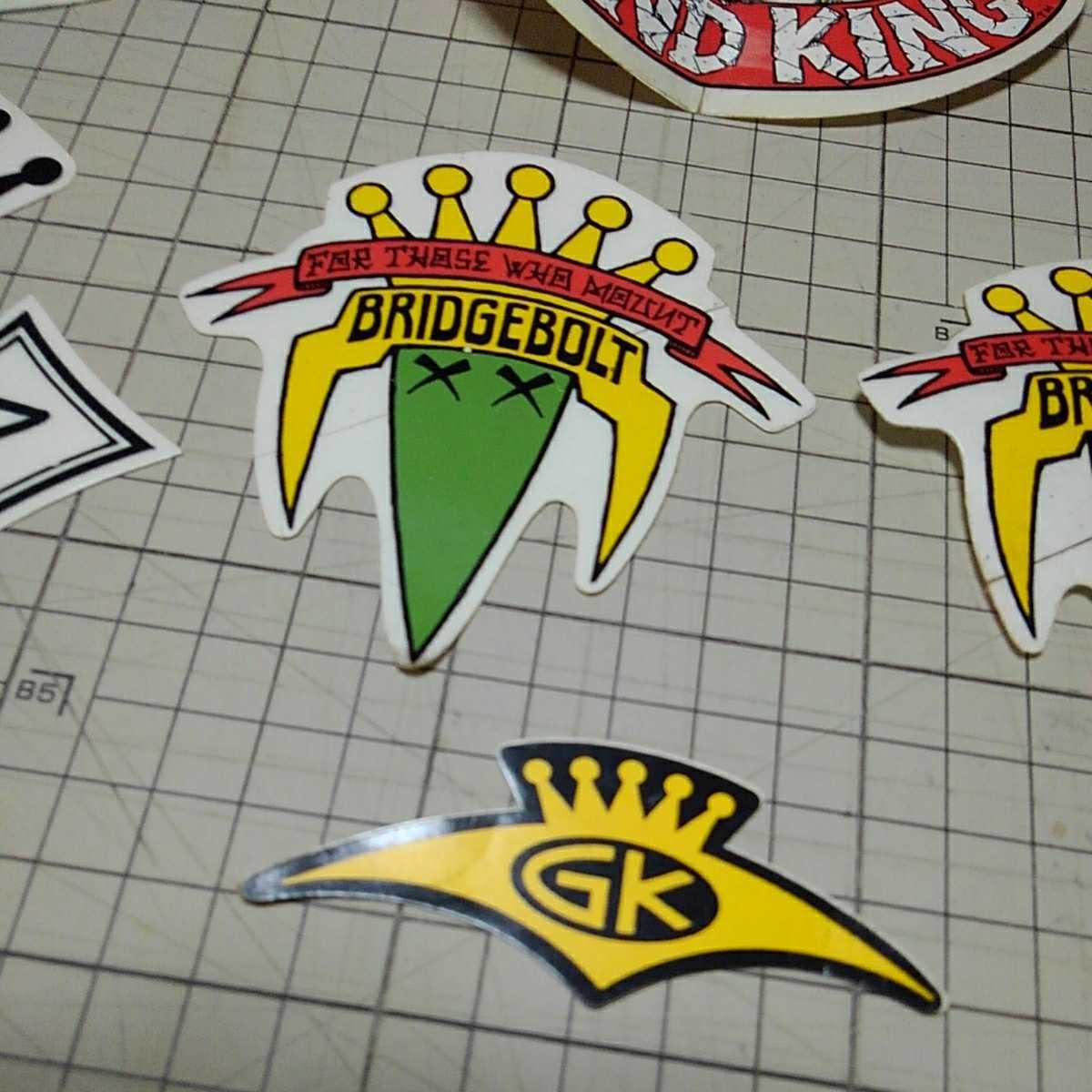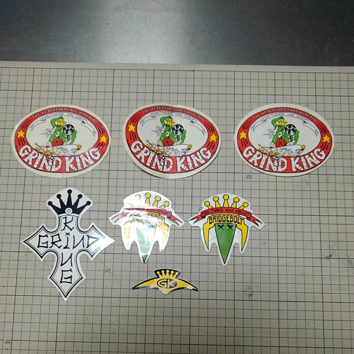 grindkingとbridgeboltのステッカーのセットです。長期未使用保管品為神経質な方はご遠慮ください。台紙1マス1センチからご判断ください。スケートボード関係多数出品中です。