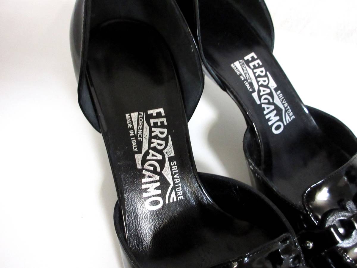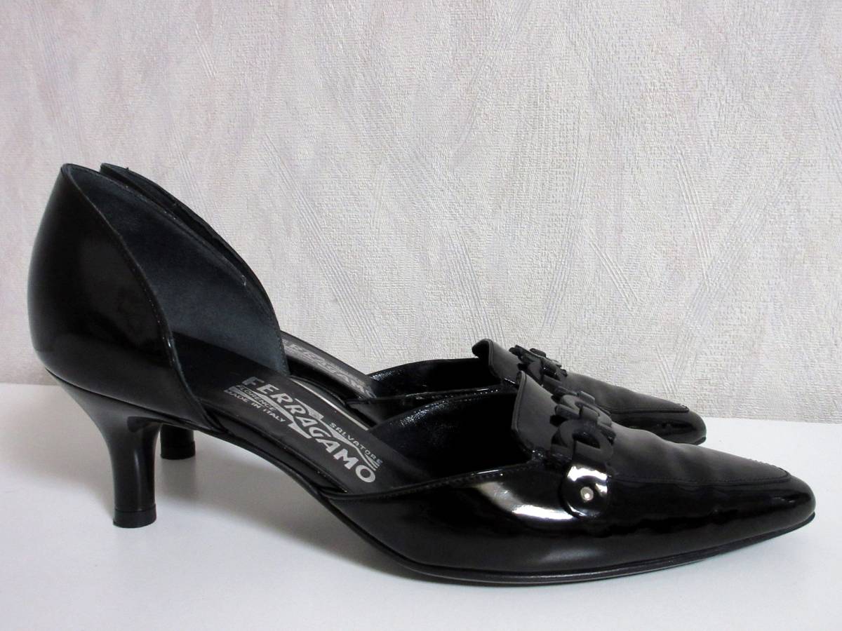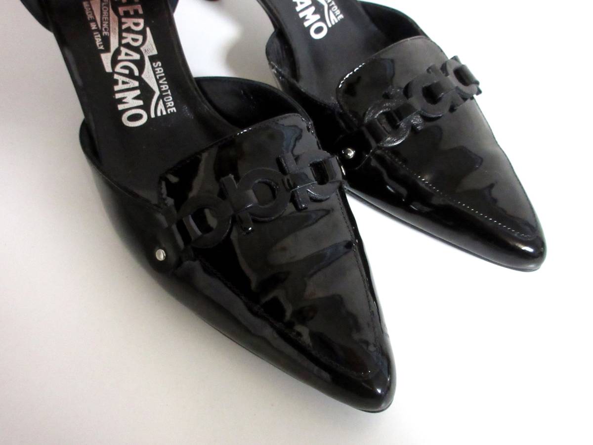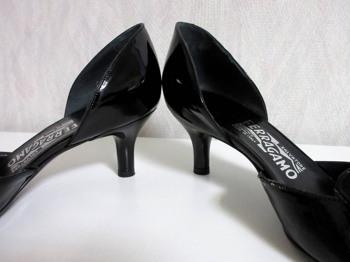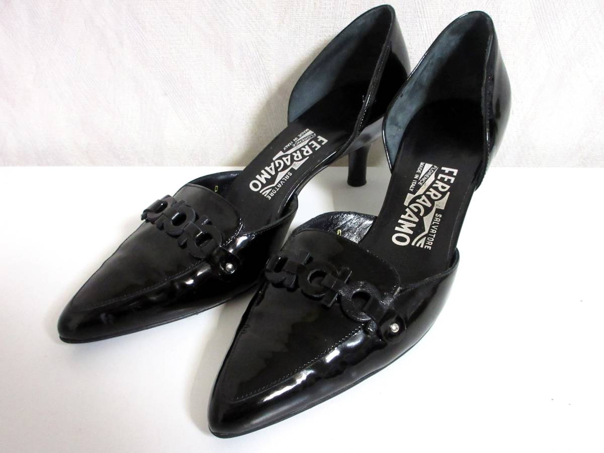 サルヴァトーレフェラガモ ガンチーニ エナメル レザー パンプス 黒 ブラック 6D 北3826