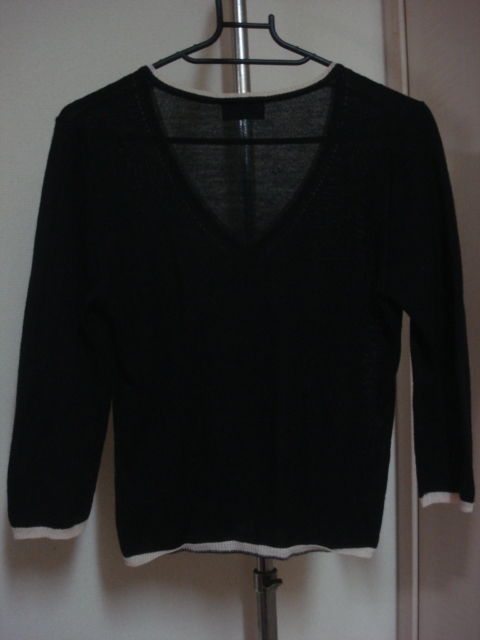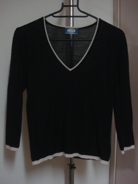 格安イタリア製・ANNA MOLINARI BLUEGIRL(アンナモリナーリ・ブルーガール)・黒系ニット地・可愛い縁パイピング付きVネック系セーター M位になります。