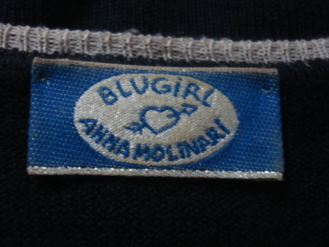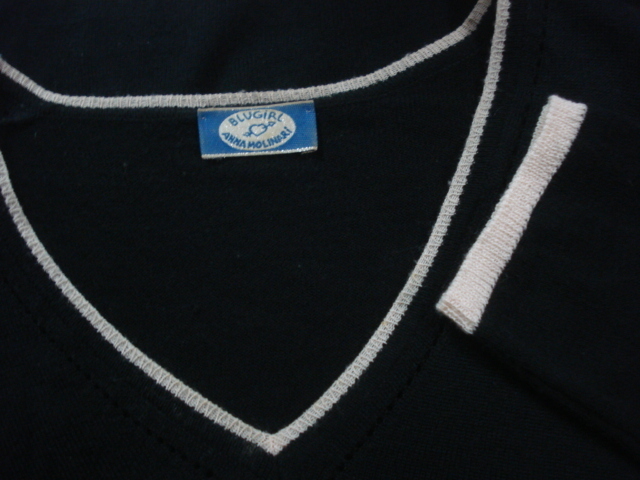 イタリア製高級人気ブランド ANNA MOLINARI BLUEGIRL(アンナモリナーリ・ブルーガール) の黒系ニット地・可愛い縁パイピング付きVネック系セータータイプのお洒落な高級レアモデルです。