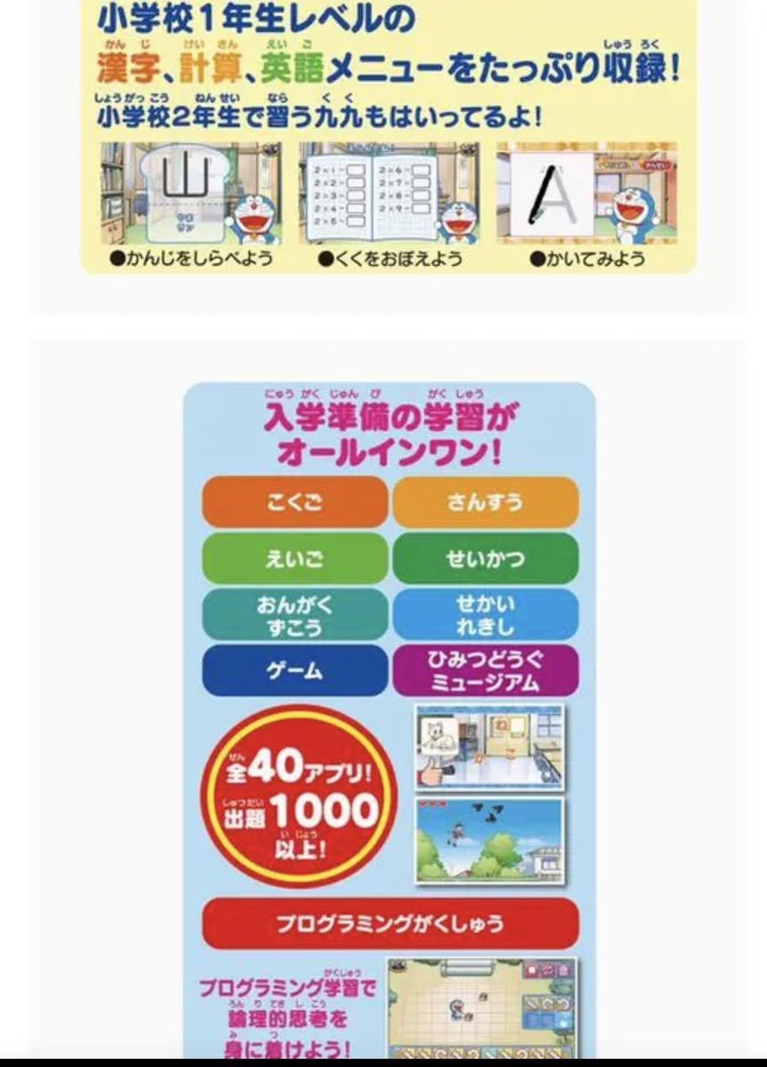ドラえもんのキャラクターとひみつ道具で楽しく遊べるタブレット型学習パッド