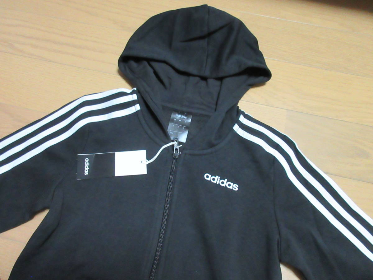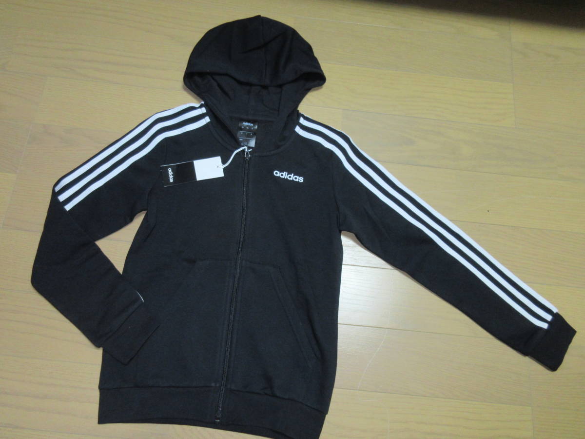 adidas ジュニア ジップアップパーカー 150㌢ BK/WH 新品 ☆決算セール★