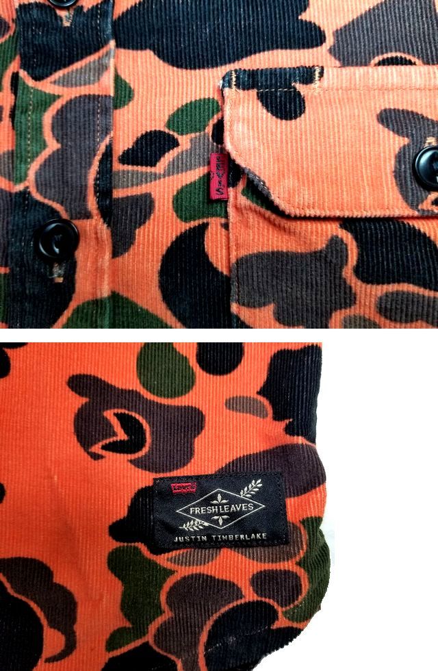 #古着屋大和 リーバイス ジャスティン・ティンバーレイク コラボ 迷彩 総柄 JT ワーカーシャツ コーデュロイシャツ ワークシャツ Sサイズ
