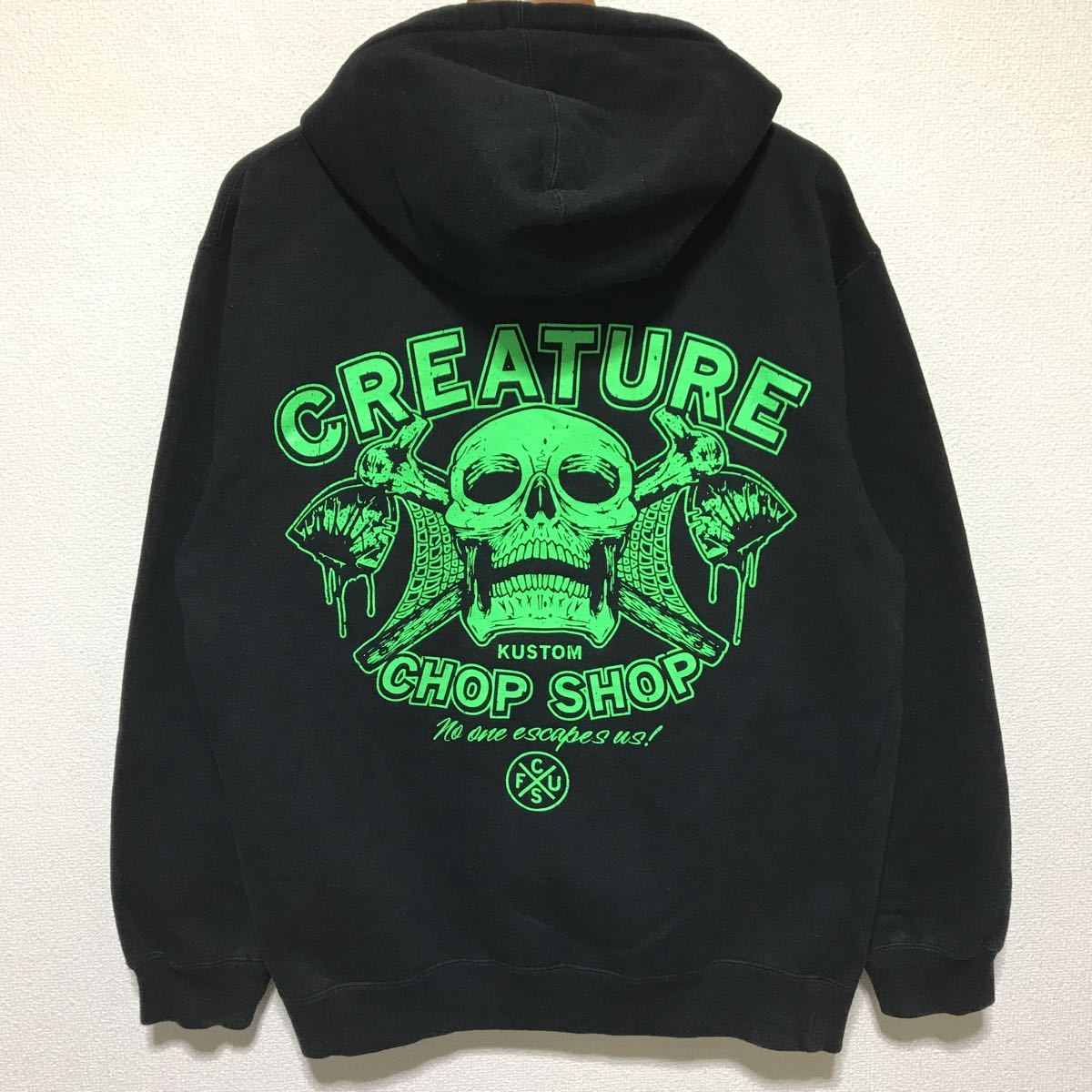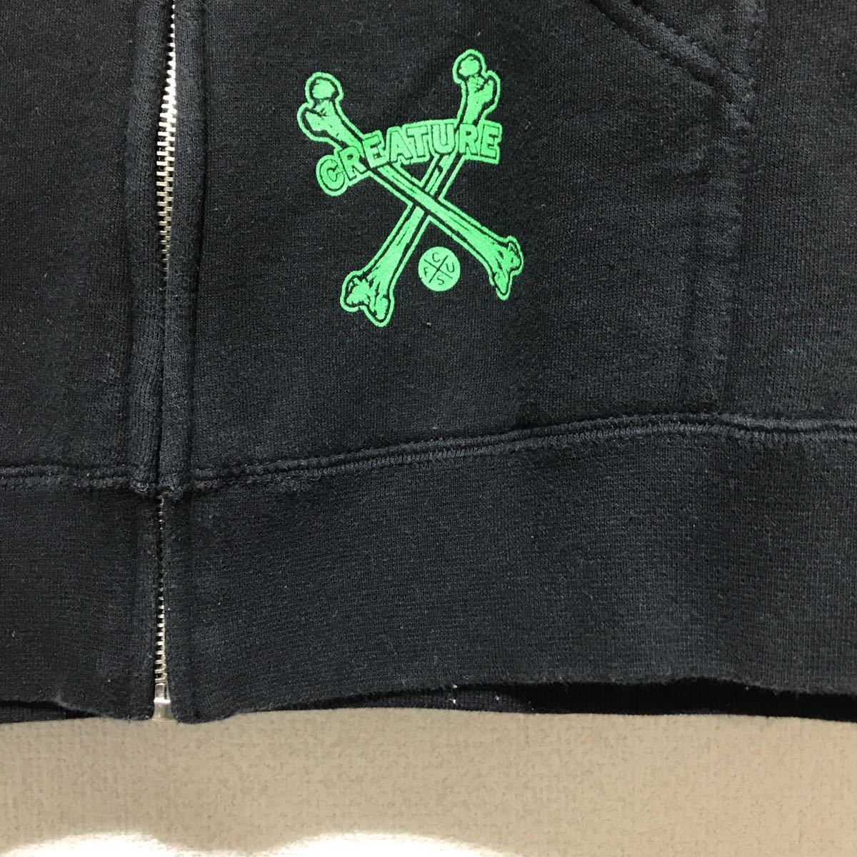 [送料無料]CREATURE/クリーチャー/ジップパーカー/スウェット/裏起毛/ブラック/NHS製/Sサイズ