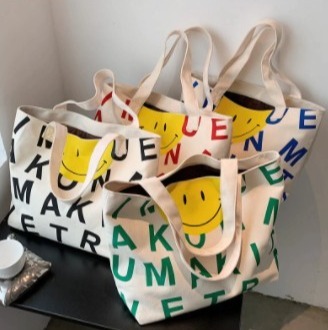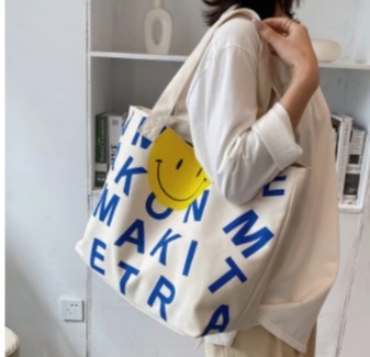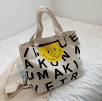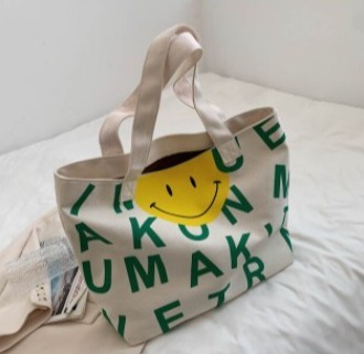 スマイル アルファベット イラスト キャンバスショルダーバッグ エコバッグ トートバッグ ハンドバッグ,大容量