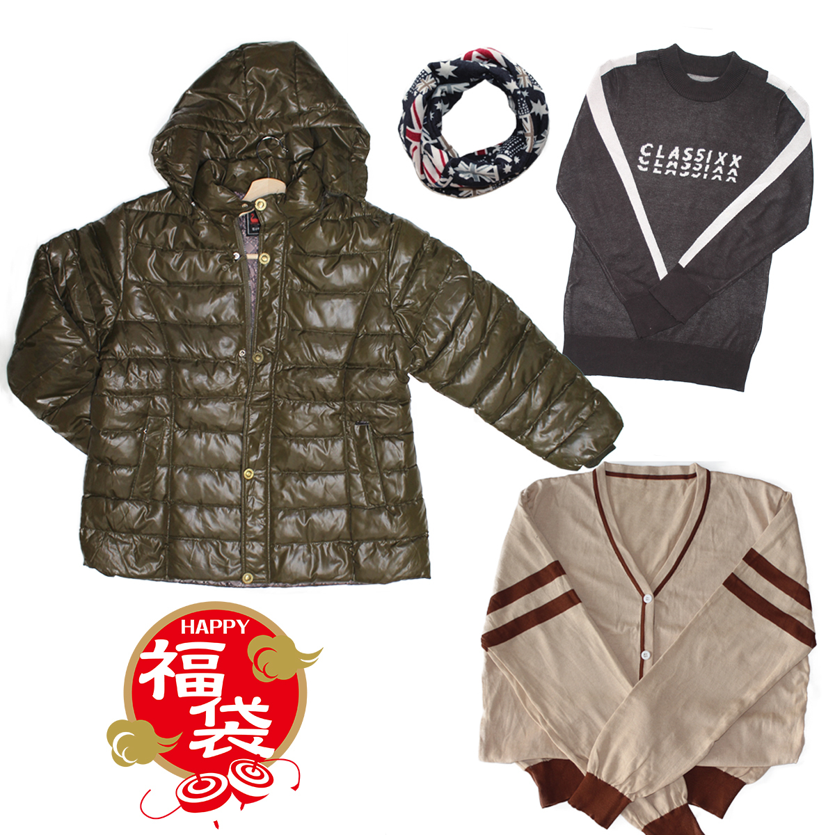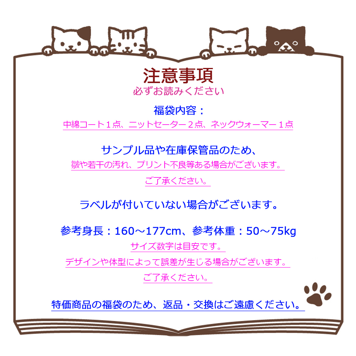※福袋内容(4点セット):中綿コート1点+ニットセーター2点+ネックウォーマー1点