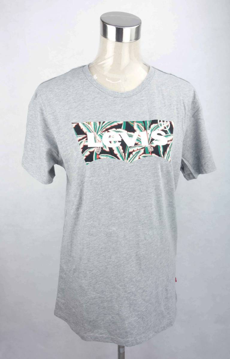 リーバイスのTシャツ グレイ です。 ロゴの下地はヤシの木のデザインになっています。 セール品ですので、在庫なくなり次第、終了させて頂きます。 新品/未使用/(保管ジワ、紙タグに初期ダメージあります。ご了承ください。) サイズ:M | ||