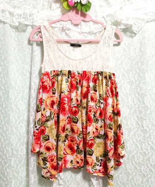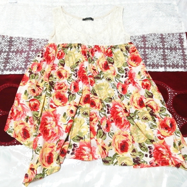白レース赤緑花柄ミニスカートネグリジェワンピース White lace red green floral pattern mini skirt negligee dress