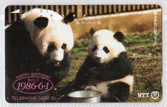 パンダのテレフォンカード、使用済みです。 ホァンホァンとトントンです。 |
