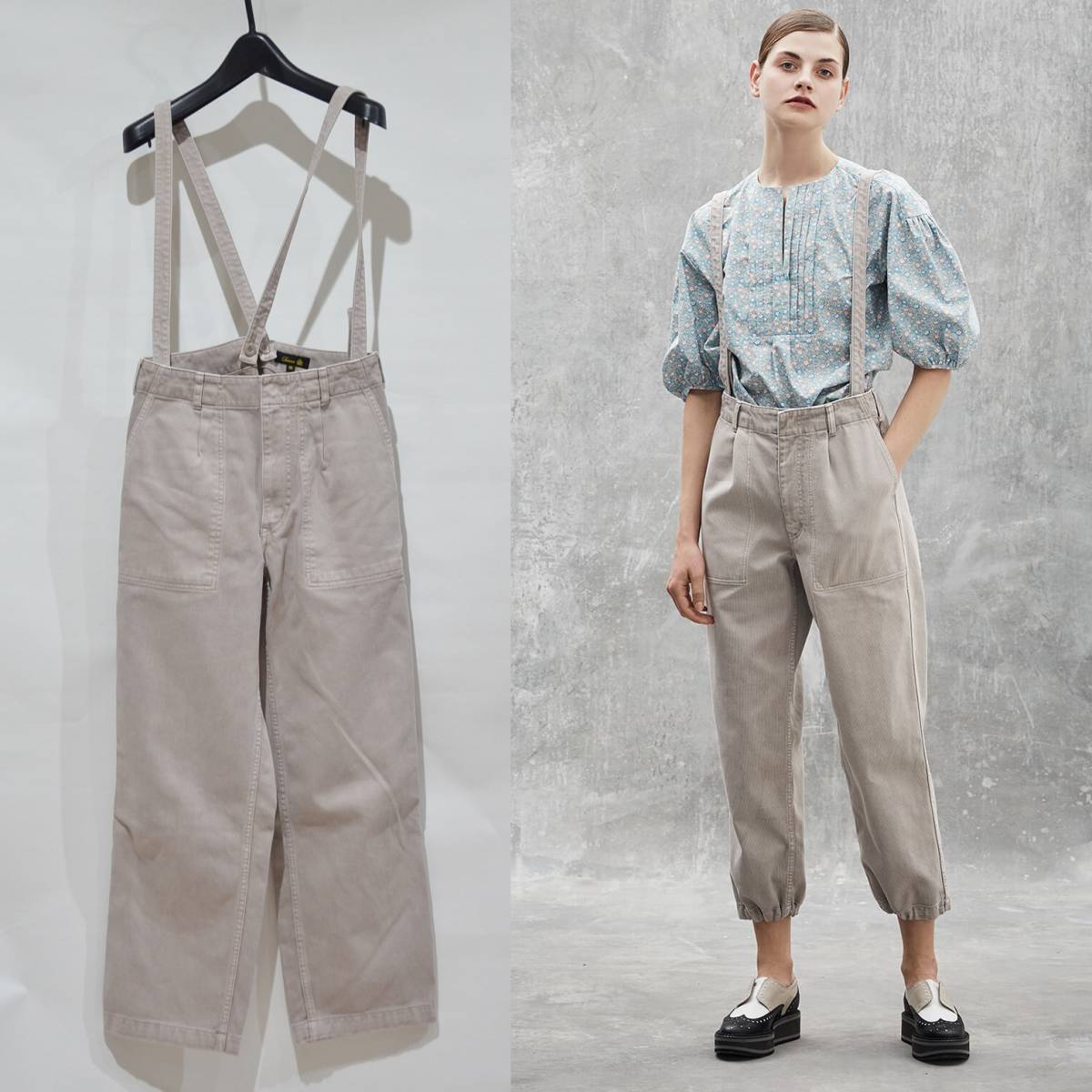 Drawer ドゥロワー 21SS コットン サスペンダー パンツ ライトグレー系 36 Y-300774