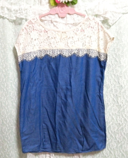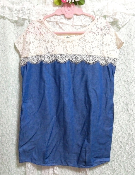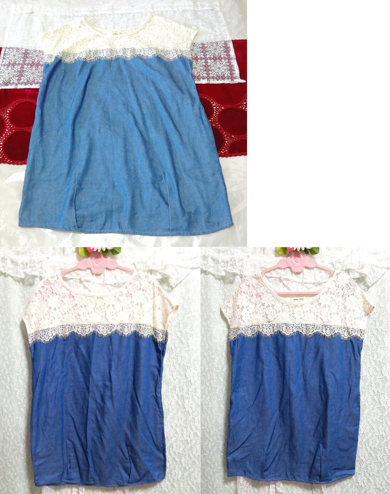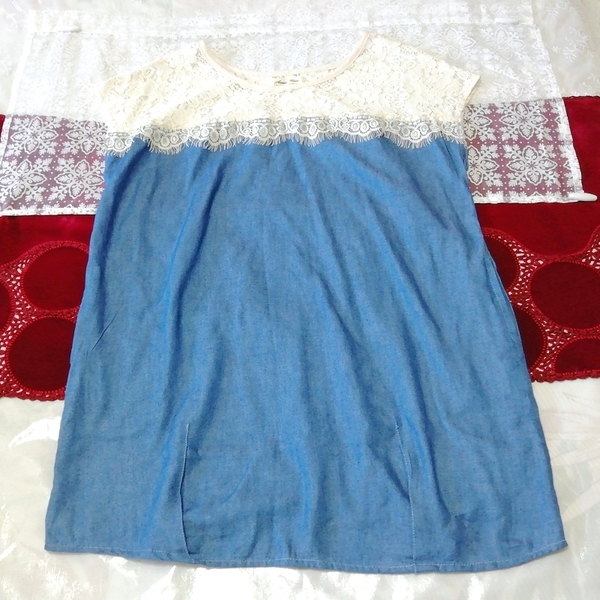 白レースデニムスカートノースリーブチュニック ネグリジェ ワンピース White lace denim skirt sleeveless tunic negligee dress