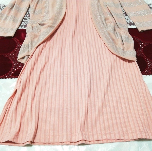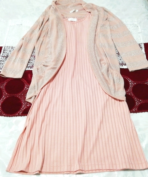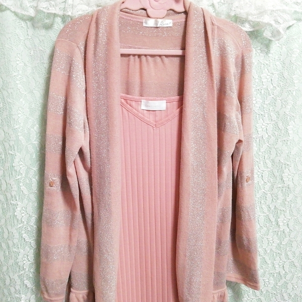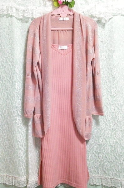 ピンクグレーラメ羽織 ネグリジェ ピンクプリーツキャミソール 2P Pink ash cardigan negligee pink pleated camisole dress