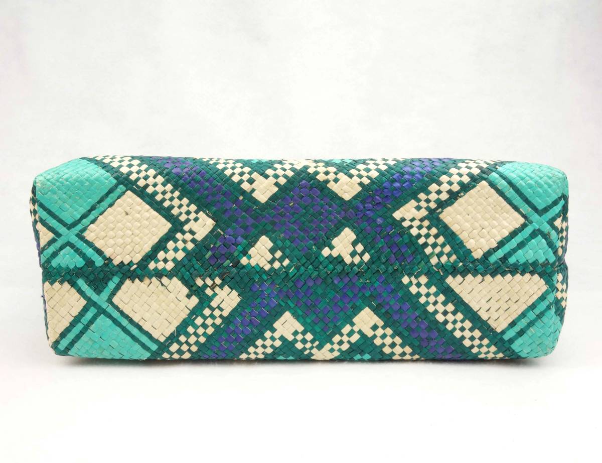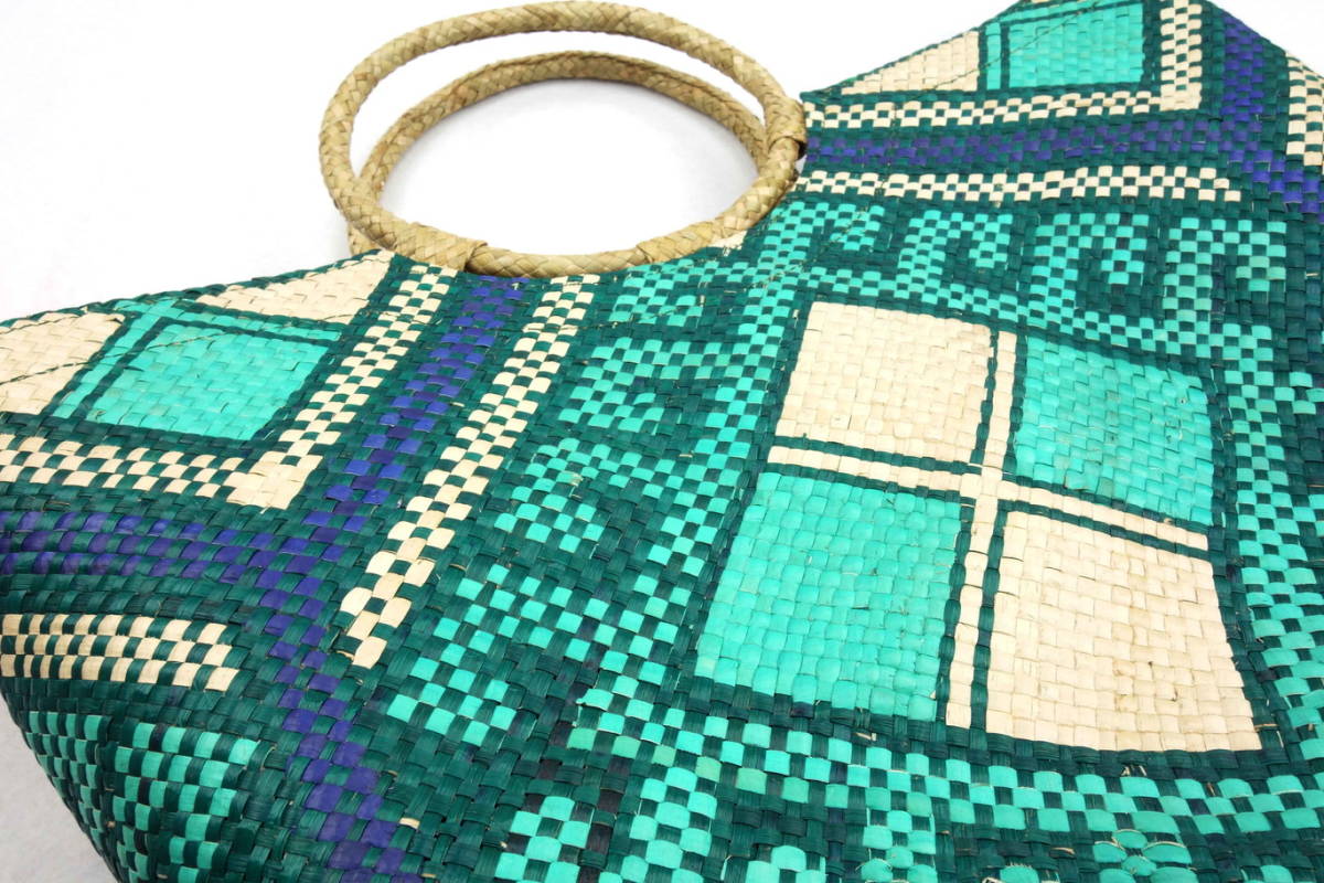 バニグはフィリピンで昔から作られている伝統的な手織り物で、ヤシ系植物の葉(ブリ、パンダナス、ティコグなど)から手作業で作られ、主にマットとして使われていました。この技術が発展し、マットだけではなく、帽子や靴、バッグなどに用いられる様になりました。 ここ数年、ヨーロッパやアメリカで大変話題となり、多くのセレブにも人気が高まっています。この需要の高まりと共にフィリピンの大事な産業になり、仕事のなかった地域の人の収入源にもなっています。 素材となる葉の加工は全て手作業で行われ、乾燥は天日干しの為、天候に左右されます。その後、用途に応じて、様々な色で染色が施されます。通常バニグを1枚作るのに職人さん1人が1週間かかり、さらにバッグに加工するのに別の専門の職人さんが1~2週間かけて作ります。 サイズ 全高:約36cm 高さ:約27cm 上幅:約45cm 下幅:約33cm マチ:約12cm 取っ手内径:約13cm ハンドメイド商品について:当商品はハンドメイドの為、商品によっては多少の型崩れがある場合が御座いますが、これはハンドメイドの魅力でもあります。アジアン雑貨特有の小さなキズやヒビ・色むら等は、ご理解頂ければと思います。 写真のモデルさんの身長は約160cmです。 撮影はフィリピンで行いました。 | |||