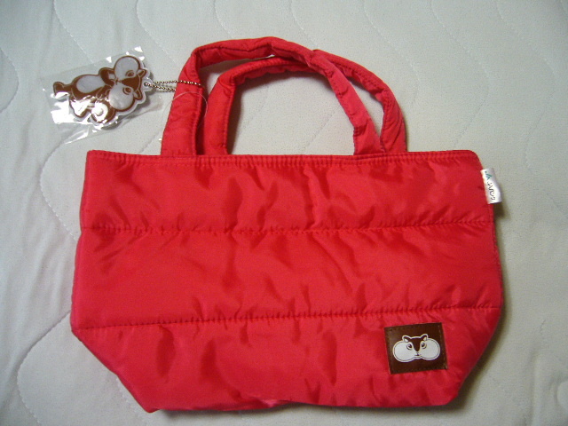 ちょリス ふわもこトート 赤色 レッド色 手提げバッグ トートバッグ かばん ちょリスリフレクター(反射板)付 330-200-120㎜ 未使用 。