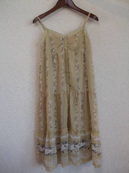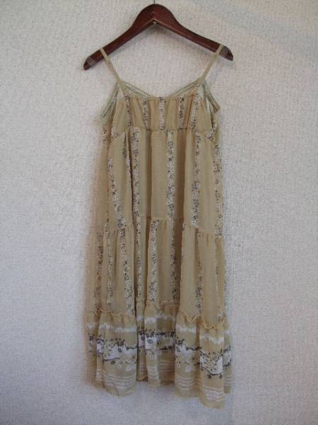 商品名 | CINEMACLUBベージュシフォン花柄膝丈キャミワンピ(USED)60913 |