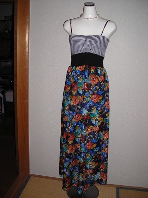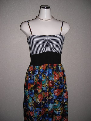 キャミソール風ドレス 肩紐調節可 ウエスト切り替え