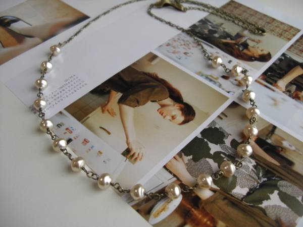 クレアの衣装箱・・シリーズです♪パール・レッスン・・シックなデザインのチェコパールのネックレスです♪個性的なバロックのチェコパールはやさしいオフホワイトです♪8ミリのパールはデザインチェーンを合わせました♪長さは83センチ位で調節自由です♪お揃いのネックレスやブレスレット、イヤリングも出品しています♪シンプルで長く着けていただけるデザインを考えて作りました!ハンドメイドをご理解頂いてノークレーム、ノーリターンでお願いします