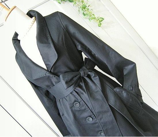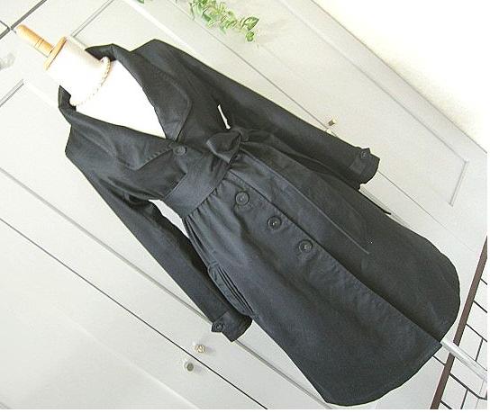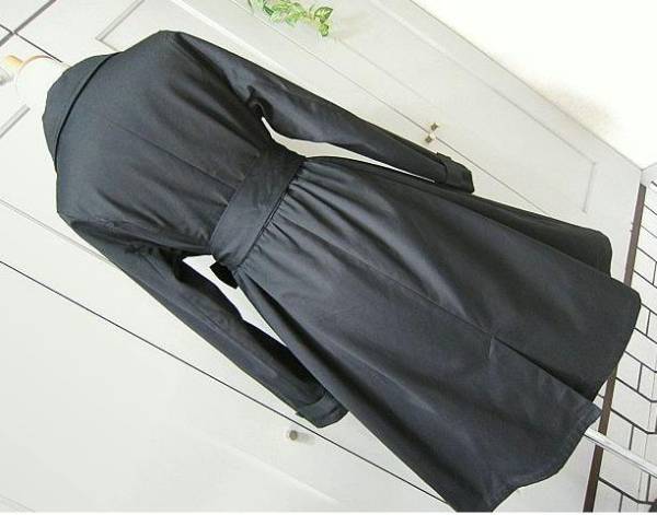 未着タグ付 Agneau7 前ボタン開き 両前ポケット付 共地リボンベルト スペアボタン付 バックスリット入(約21cm)