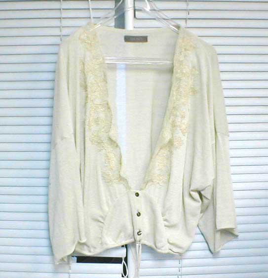 パーティーの羽織に着ていける感じの質感でニットソーといった感じです。