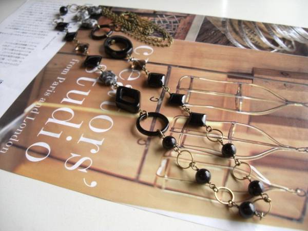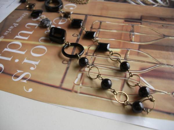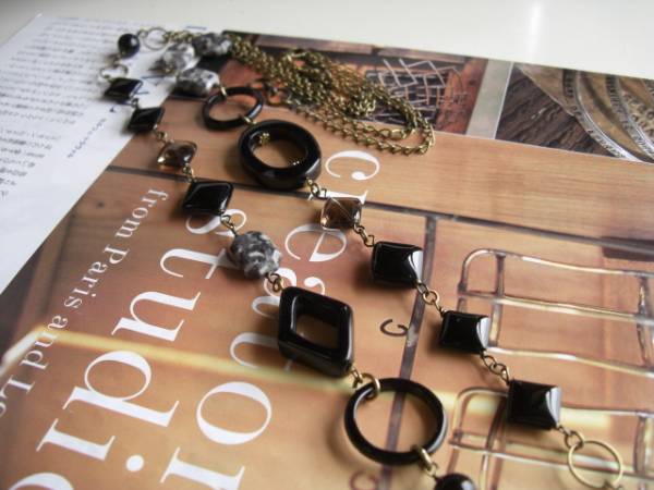 愛らしさのスパイス・・シリーズです♪オニキス・レシピ・・キュートなオニキスのネックレスです♪丸玉やリング、菱形やスクエアなどデザイン違いのオニキスにスモーキークォーツやグレイジャスパーやデザインリングを合わせてニューヨークモダンしています♪オニキスは8ミリから30ミリ位までの丸玉やリング、スクエアや菱柄です♪長さは全長長さは全長100センチ位で調節自由です♪2連にされても素敵です♪お揃いのブレスレットも出品しています♪シンプルで飽きのこないいつまでも着けられるデザインを考えて作りました!ハンドメイドをご理解頂いてノークレーム、ノーリターンでお願いします