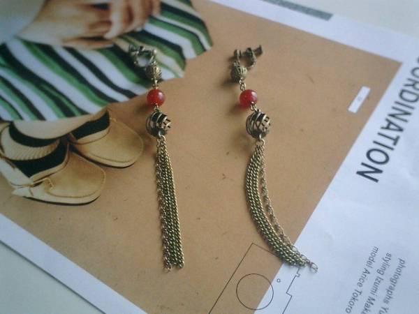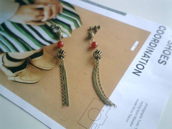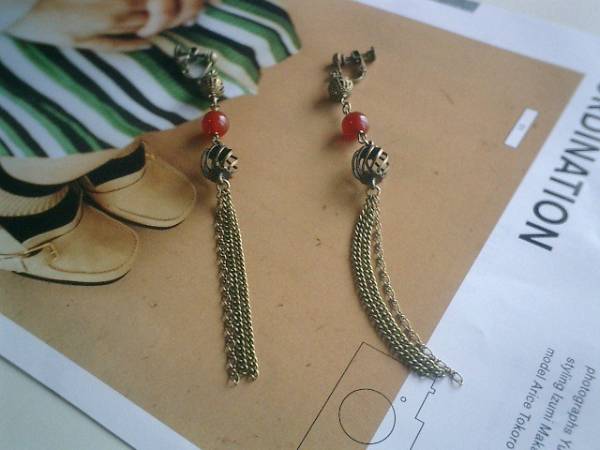 可愛さのスパイス・・シリーズです♪初夏の風・・シックな赤メノウに透かしチャームを合わせてオリエンタル仕様のイヤリングです♪シックな色合いが大人のロマンチックしています♪8ミリの丸玉の赤メノウは8ミリから10ミリ位までのデザイン違いの透かしチャームやチェーンを合わせました♪長さは12センチ位です♪ピアスにも変更出来ます♪お揃いのネックレスやブレスレットも出品しています♪♪シンプルで飽きのこないいつまでも着けられるデザインを考えて作りました!ハンドメイドをご理解頂いてノークレーム、ノーリターンでお願いします