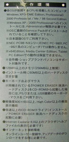【ソフトウェアの動作環境】掲載画像などを参考にして下さい。