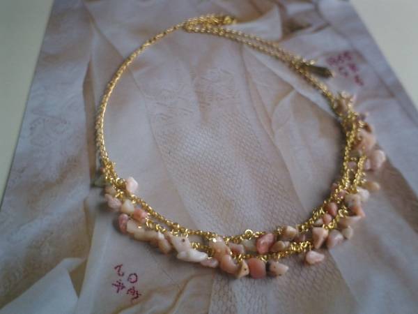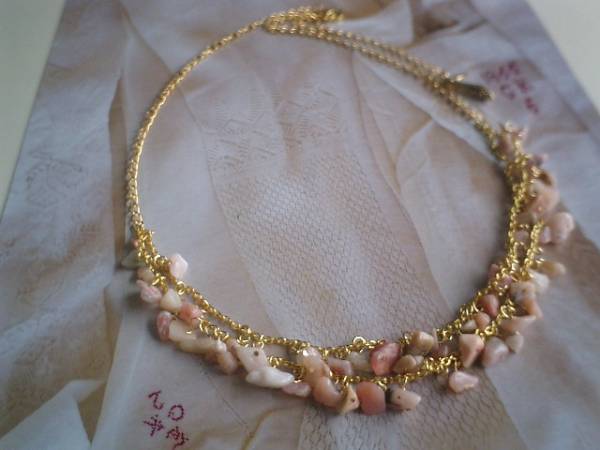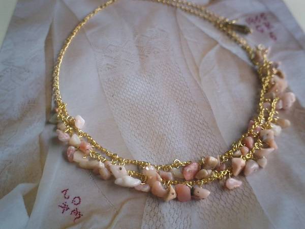 ネオ・ロマンチック・・シリーズです♪モンローに憧れて・・シックなピンクオパールのさざれのネックレスです♪6ミリから9ミリ位までのやさしい風合いのさざれを2連のチェーンに繋いでロマンチックな表情です♪長さは全長70センチ位で調節自由です♪チョーカー風にされても素敵です♪お揃いのブレスレットやピアスも出品しています♪シンプルで飽きのこないいつまでも着けられるデザインを考えて作りました♪ハンドメイドをご理解頂いてノークレーム、ノーリターンでお願いします