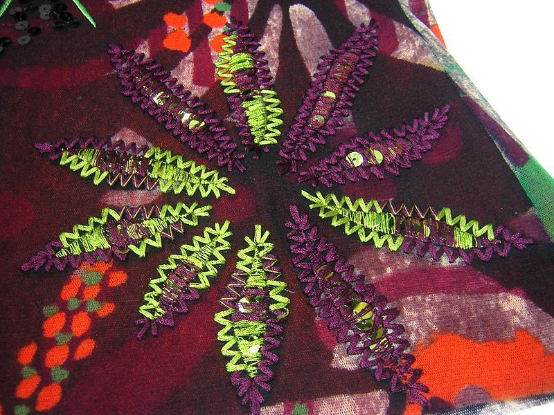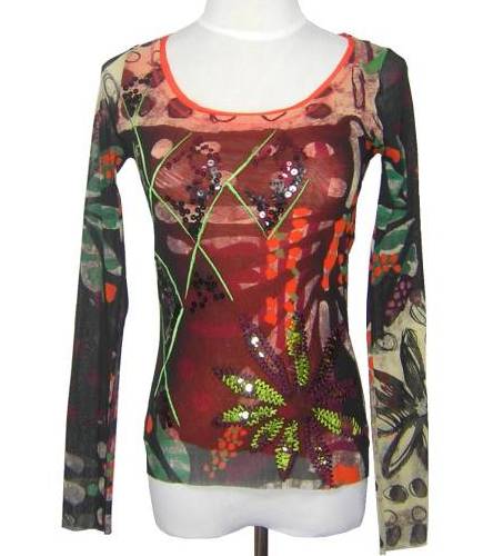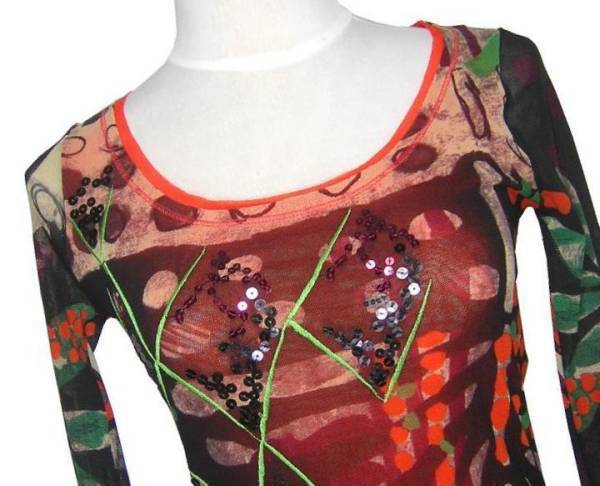 FUZZI のイタリア製、 スパンコール刺繍チュールカットソーでございます。 伸縮性あり/2枚仕立て | |