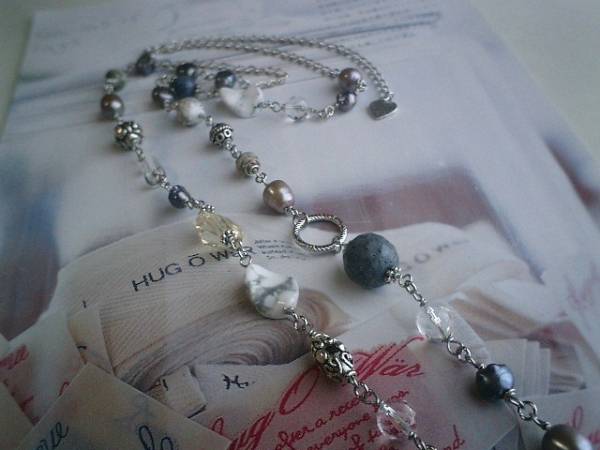 ジャンヌのコレクション・・シリーズです♪ブルー・デニム・・シックなブルー珊瑚のネックレスです♪インディゴ・ブルーのブルー珊瑚にレモン水晶や淡水パールや水晶やハウライトや薔薇のメタルチャームやアンティークビーズを合わせて可憐な表情です♪♪ブルー珊瑚は6ミリ、8ミリの丸玉、14ミリのラウンドカットです♪レモン水晶は15ミリのラフカット、水晶は8ミリ、6ミリのラウンドカット、淡水パールはバロックやライスです♪長さは全長92センチ位で調節自由です♪2連にされても素敵です♪お揃いのネックレスも出品しています♪シンプルで飽きのこないいつまでも着けられるデザインを考えて作りました!ハンドメイドをご理解頂いてノークレーム、ノーリターンでお願いします