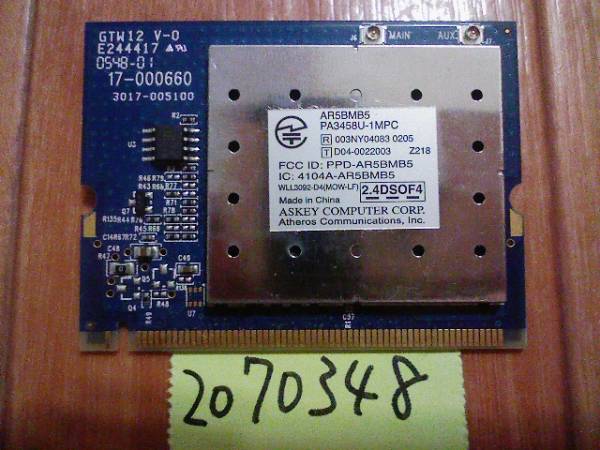 商品:中古Qosmio F20/573LSから取り外したMiniPCI無線LANカード