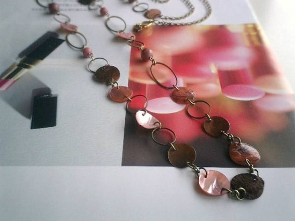 お気に入りのフォルム・・シリーズです♪ピンク・ルージュ・・シックなロードナイトのネックレスです♪ピンクシェルやデザインリングを合わせてキュートな表情です♪ロードナイトは6ミリ、8ミリの丸玉です♪シェルビーズはブラウンピンクやモーヴピンク、ベージュピンクなど大人っぽいピンクを集めました♪長さは全長118センチ位で調節自由です♪2連にされても素敵です♪同じデザインの長さ違いのネックレスやブレスレットも出品しています♪シンプルで飽きのこないいつまでも着けられるデザインを考えて作りました!ハンドメイドをご理解頂いてノークレーム、ノーリターンでお願いします
