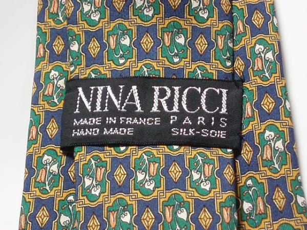 未使用品タグなしです。ニナリッチ(NINA RICCI)ネクタイです。素材はシルク(絹)100%です。フランス製です。HAND MADE(ハンドメイド)です。素材の特性でシワや折り皺があります。未使用品ですが汚れやキズの見逃し等あるかもしれません。完品を求める方はトラブルになる可能性がありますので、絶対に入札しないで下さい。注意しながら検品をしていますが、多数のネクタイを出品している為もしかしたら多少の変色、シミ等の見逃しもあると思います。トラブル防止の為、多少の変色、シミ等の見逃しを許せない方もオークションに参加しないで下さい。