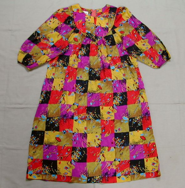 ■美品:ハワイアンなカラフル薄手ワンピース 七分袖 USA製 M-Lサイズ向き  DmV16