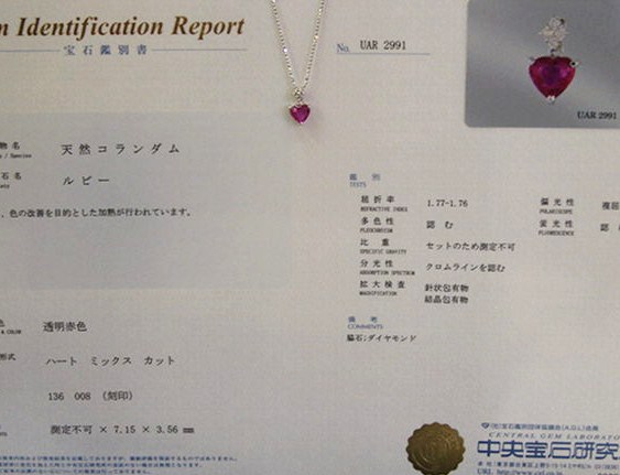 *チェーンは取り外し出来ますので他のペンダントにも使えます。*中央宝石研究所の鑑別書付きで安心。